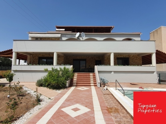 Προς Πώληση Πολυτελής Βίλα, Σαρωνικός , περιοχή Λουτρά Ωραίας Ελένης, 532 τ.μ σε 1.010 τ.μ. οικόπεδο, 3 επιπέδων, 2007 έτος κατασκευής, σε καταπληκτική κατάσταση. Το ισόγειο αποτελείται από καθιστικό με τζάκι, τεράστια χωριστή κουζίνα εκπληκτικού design, 1Υ/Δ, μπάνιο και χώρο γραφείου. Ανεβαίνοντας στον Ά όροφο συναντάμε 2 μεγάλα Υ/Δ εκ των οποίων το 1 είναι master, dress room, υπερπολυτελές μπάνιο με τζακούζι και υδρομασάζ. Εξωτερικά υπάρχει μεγάλη βεράντα από την οποία οδηγούμαστε με εξωτερική σκάλα στο υπαίθριο roof garden με εκπληκτική θέα τον Σαρωνικό κόλπο. Με την εσωτερική σκάλα του σπιτιού ή το ασανσέρ οδηγούμαστε στο ημιυπόγειο (περίπου 170τ.μ) στο οποίο υπάρχει μπάνιο, μεγάλη αποθήκη, ένας ενιαίος αδιαμόρφωτος χώρος και το λεβητοστάσιο. Υπάρχουν αλουμίνια βαρέου τύπου, σίτες, πόρτα ασφαλείας, συναγερμός, αυτόνομη θέρμανση με πετρέλαιο, κλιματισμός, ηλιακός, δορυφορική τηλεόραση, έχει 3 θέσεις στεγασμένου πάρκινγκ, μεγάλες βεράντες που οδηγούν στον κήπο και την πισίνα περίπου 60τ.μ.. Βρίσκεται εντός του οικισμού με εύκολη πρόσβαση στην τοπική αγορά και την συγκοινωνία, μόλις 5' από την παραλία. Κατάλληλο για μόνιμη κατοικία, τιμή: 650.000€