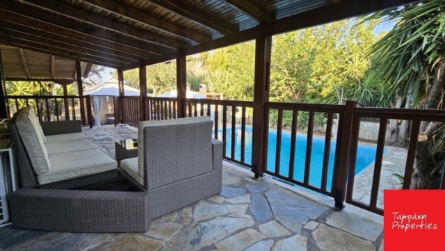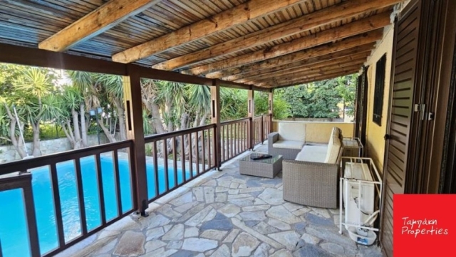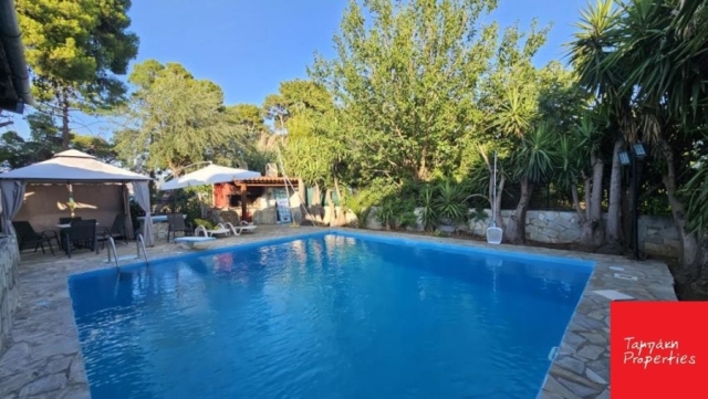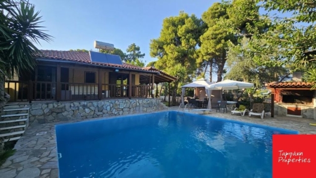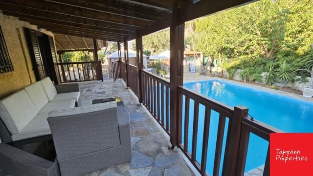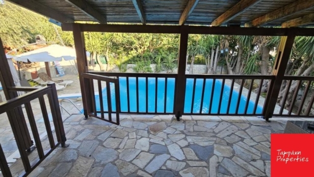 For Sale Detached house, Loutraki-Perachora 95sq.m ,Ground floor , 3 Bedroom/s ,1 bath/s , 1986 built year , features: Security alarm, Storage room, Fireplace, Double Glazed Windows, Window Screens, Balconies, Water Bore, AirConditioning, Solar water system, Swimming pool, Back yard (Garden), Renovated 1 fireplace/s , price: 300.000€